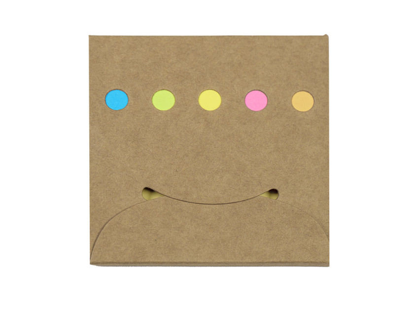 Набор стикеров в крафтовой обложке. Размер 85х84х6 мм. 6 цветов. 20 стикеров каждого цвета с клеевым краем.