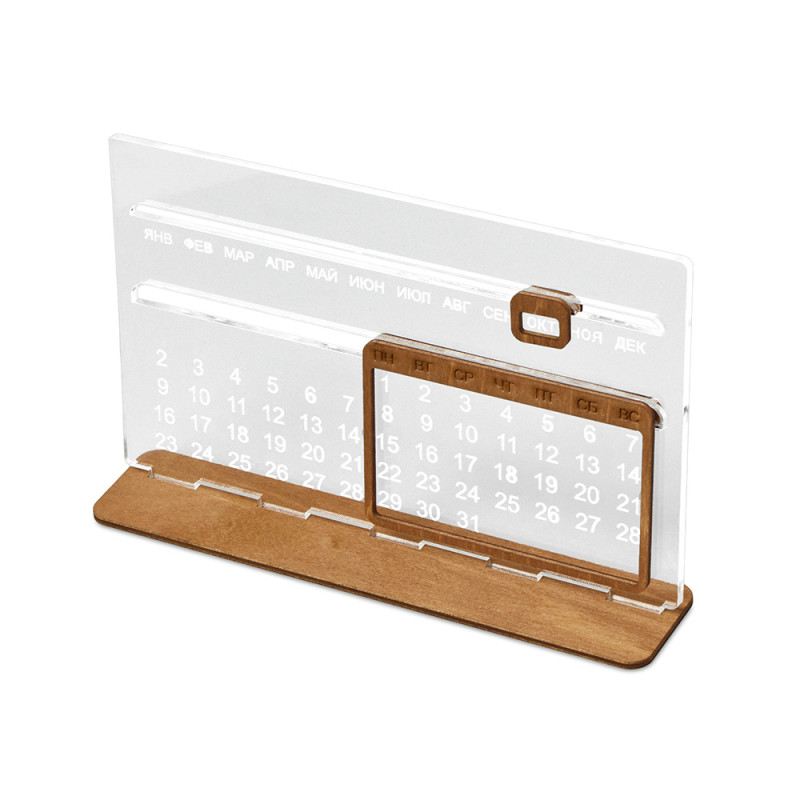 Элегантный вечный календарь не требует замены каждый год. Простая система смены дат позволяет быстро настроить текущий день, месяц и число, оставаясь всегда актуальным. Минималистичный дизайн с тёплой текстурой дерева делает календарь стильным элементом рабочего стола, книжной полки или оригинальным подарком, который будет радовать долгие годы.