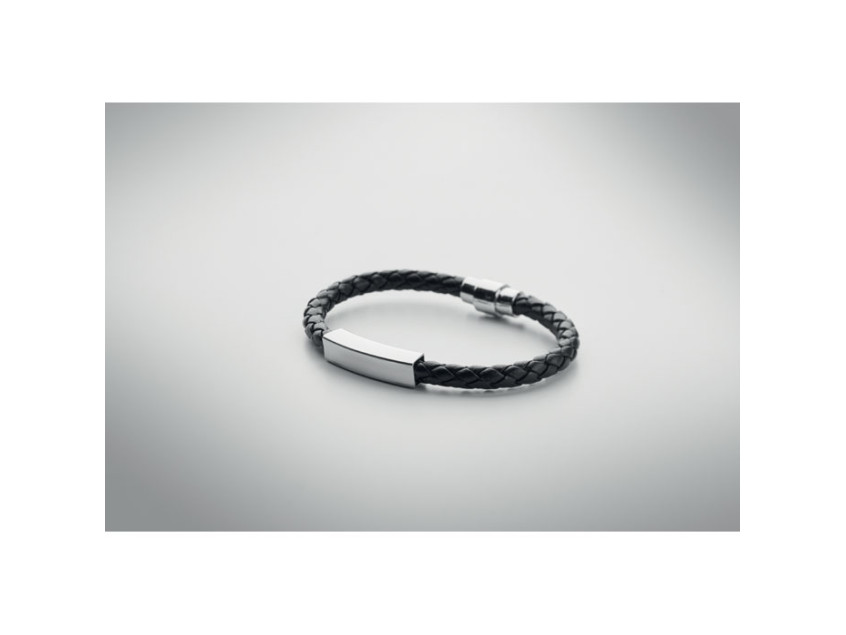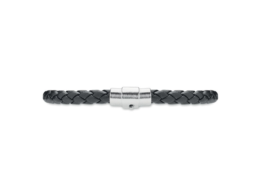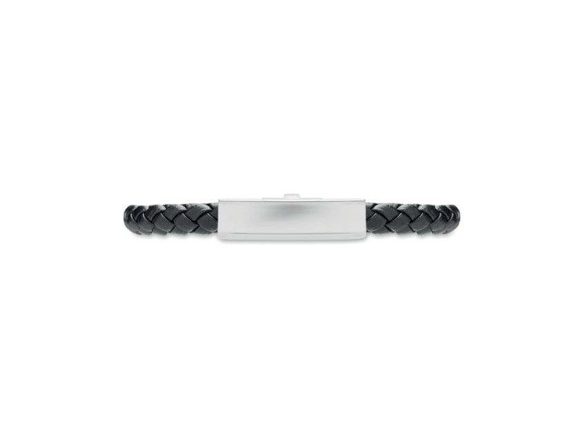 Представьте, как ваш логотип или название компании превращаются в часть стильного образа. Плетеный браслет из искусственной кожи черного цвета с фурнитурой из полированной стали — это сочетание минимализма и изысканности. Он идеально подходит как для делового стиля, так и для повседневного образа, добавляя нотку утонченности.