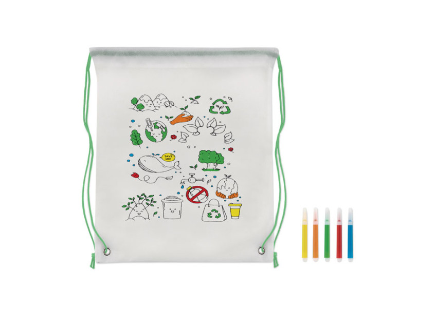 Нетканый мешок на шнурке с 5 маркерами. 80 гр / м².