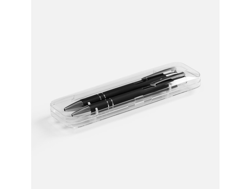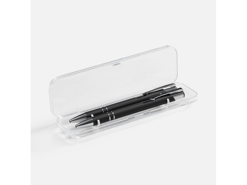 Набор из двух ручек Keskus с покрытием софт-тач в прозрачном пластиковом футляре.
