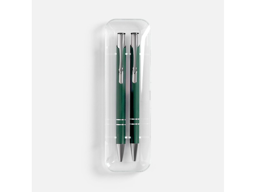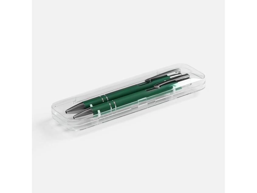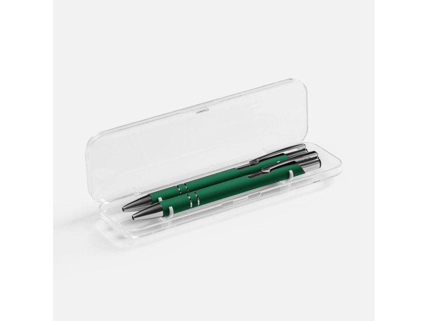 Набор из двух ручек Keskus с покрытием софт-тач в прозрачном пластиковом футляре.