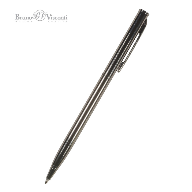 Маленькая автоматическая металлическая ручка серии «PALERMO» от Bruno Visconti порадует любителей всего изящного и утонченного. Стержень легко выдвигается благодаря поворотному механизму. Синие пигментные чернила DOKUMENTAL (Германия) и пишущий узел Premec (Швейцария) – обеспечивают качественное и мягкое письмо.