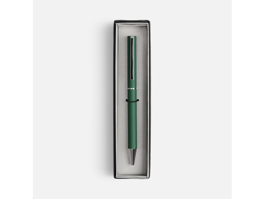 Элегантная ручка в металлическом корпусе с покрытием софт-тач. Футляр из дизайнерской бумаги с контрастным коробом придает подарку законченный вид.