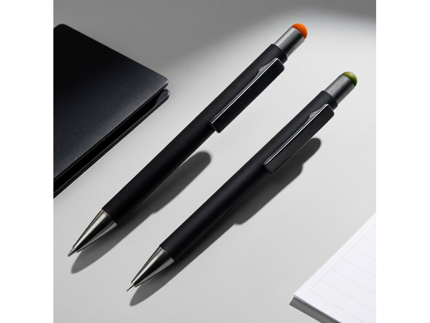 В черном-черном городе, на черной-черной улице жила черная, но очень стильная ручка FACTOR BLACK. Немецкие чернила и шарик из карбида вольфрама обеспечат гладкое письмо без особого нажима. Приятный на ощупь бархатистый корпус с покрытием soft touch и яркий контрастный стилус на торце обязательно обратят на себя внимание. На ручке возможна двухцветная 3D-гравировка. Эта красавица точно не останется незамеченной, особенно если ее персонализировать! • Pantone, близкий к 3554C• Размер 140*10 мм• Корпус из алюминия с покрытием soft touch• Зеркальная подложка в цвет стилуса• Яркий стилус. Pantone, близкий к 200 С• Металлический клип-прищепка черного цвета• Носик и кнопка из пластика• Нажимной механизм подачи стержня• Пулевидный пишущий узел 1.0 мм• Длина линии письма 1000 м • Чернила Dokumental. Цвет чернил синий• Сменный стержень Parker type