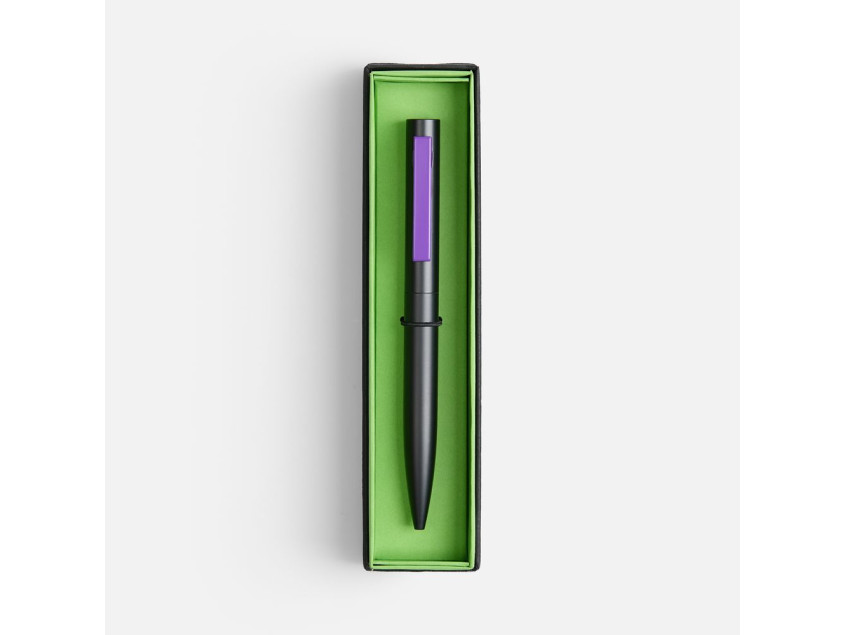 Стильная металлическая ручка Inkolor в матовом черном корпусе с цветным клипом. Футляр из дизайнерской бумаги с контрастным коробом придает подарку законченный и элегантный вид.
