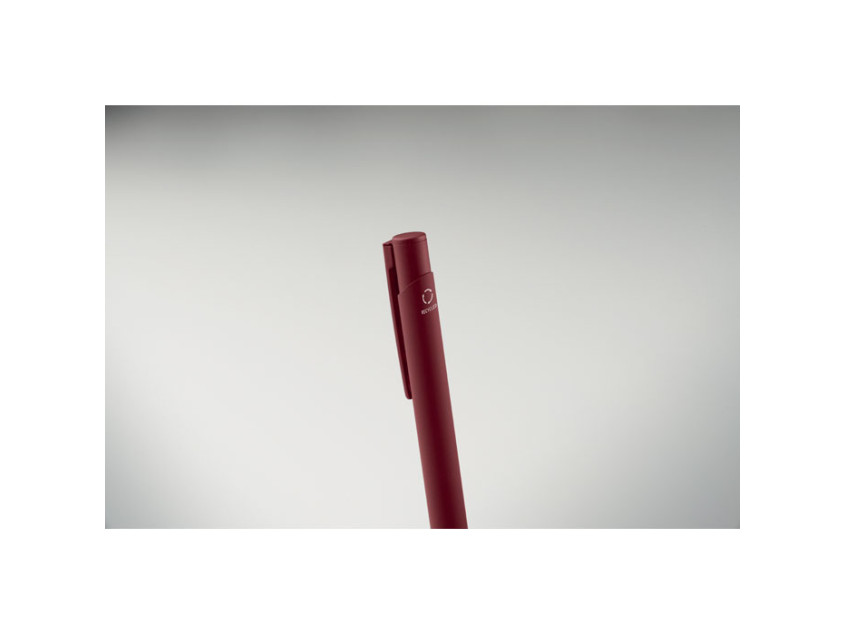 Ручка с кнопочным механизмом из переработанного алюминия с металлическим зажимом и цветным прорезиненным корпусом. Синие чернила.