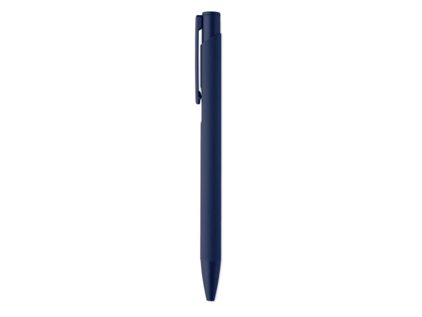 Ручка с кнопочным механизмом из переработанного алюминия с металлическим зажимом и цветным прорезиненным корпусом. Синие чернила.
