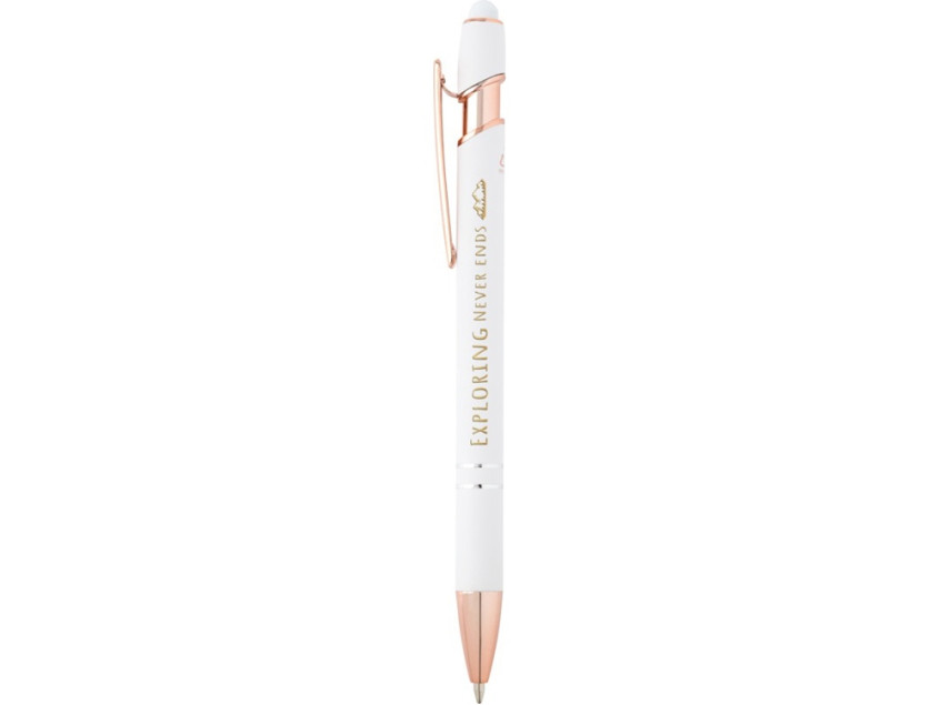 Шариковая ручка Nanna с покрытием из розового золота имеет корпус из переработанного алюминия и сенсорный стилус из силикона. Переработанный алюминий уменьшает количество отходов на свалках и помогает сохранять природные ресурсы для сокращения выбросов парниковых газов. Цвет чернил: черный. Длина непрерывной линии: 800 метров. Размер пера: 1,0 мм. Recycled Aluminium.