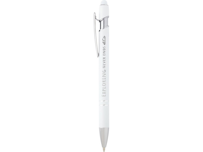Шариковая ручка Kish с серебряным покрытием имеет корпус из переработанного алюминия и сенсорный стилус из силикона. Переработанный алюминий уменьшает количество отходов на свалках и помогает сохранять природные ресурсы для сокращения выбросов парниковых газов. Цвет чернил: синий. Длина непрерывной линии: 800 метров. Размер пера: 1,0 мм. Recycled Aluminium.