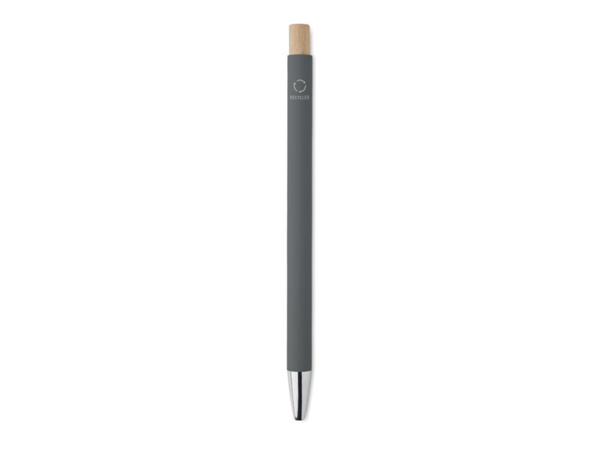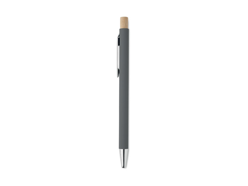 С первого взгляда ручка притягивает внимание своим минималистичным дизайном. Каменный серый цвет корпуса из переработанного алюминия создает ощущение сдержанной роскоши, а серебристый наконечник и клип добавляют изысканности. Бамбуковая кнопка — это не только экологичный акцент, но и приятная тактильная деталь, которая делает использование ручки еще более комфортным.