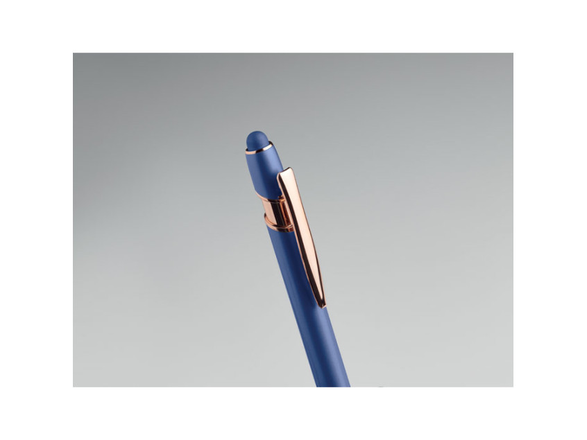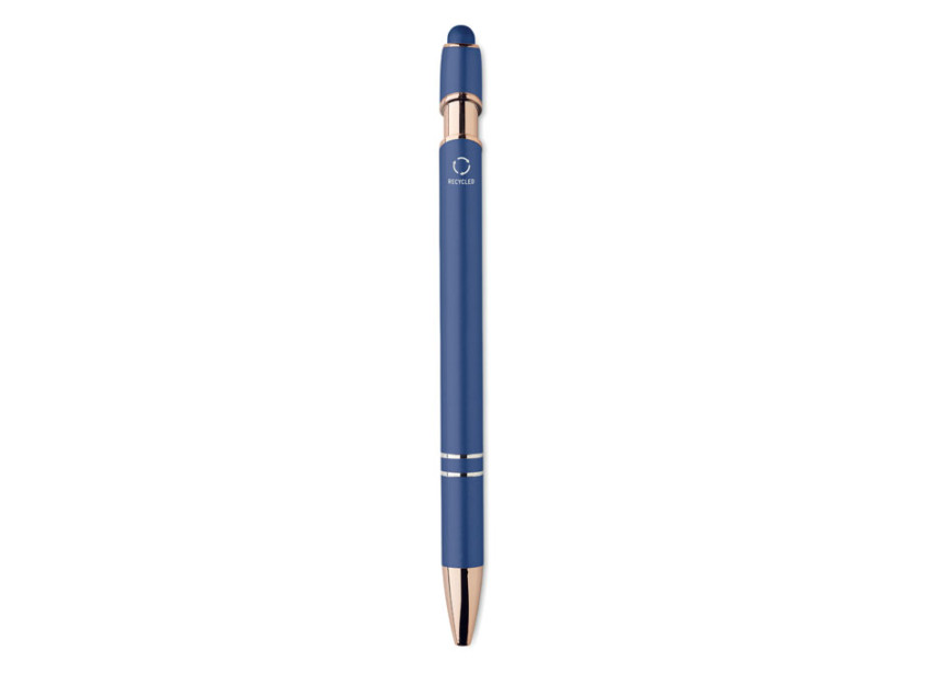 Ручка KM2380-04 — это идеальное сочетание стиля, экологичности и практичности. Ее корпус из переработанного алюминия не только выглядит роскошно, но и помогает сократить количество отходов. Детали из розового золота добавляют изысканности, делая ручку универсальным аксессуаром для любого случая. Синие чернила подчеркивают классический стиль, а стилус позволяет использовать ручку для работы с сенсорными устройствами.