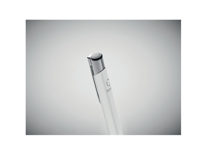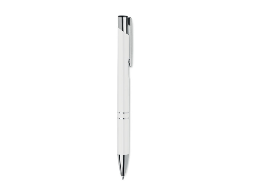 Корпус ручки выполнен из переработанного алюминия, что делает ее не только стильной, но и экологически ответственной. Белый цвет придает ей лаконичность и универсальность, позволяя сочетать с любым стилем — от делового костюма до повседневного образа. Алюминий, легкий и прочный, обеспечивает комфортное письмо, а кнопочный механизм добавляет удобства в использовании.