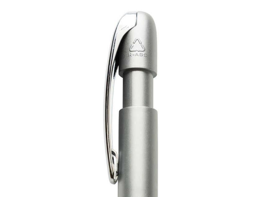 Шариковая ручка с элегантным хромированным металлическим клипом. Оснащена стержнем с немецкими синими чернилами Dokumental®, которых хватит, чтобы прочертить линию до 1200 метров. Пишет мягко и плавно. На 55% состоит из переработанного ABS-пластика, сертифицированного GRS.