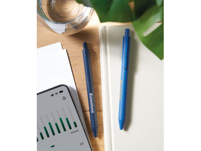 Ручка нажимная из зерноволокна и ПП. Синие чернила.