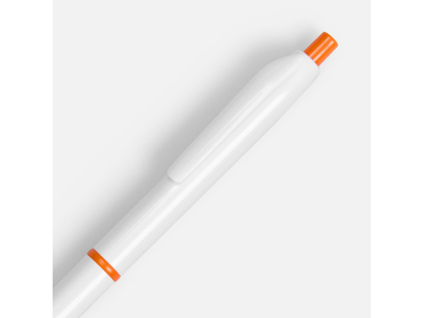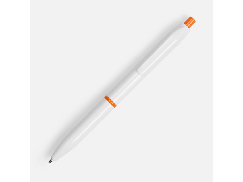 Классическая модель ручки с акцентными деталями: кольцом и кнопкой, — которые дополнят логотип компании.
