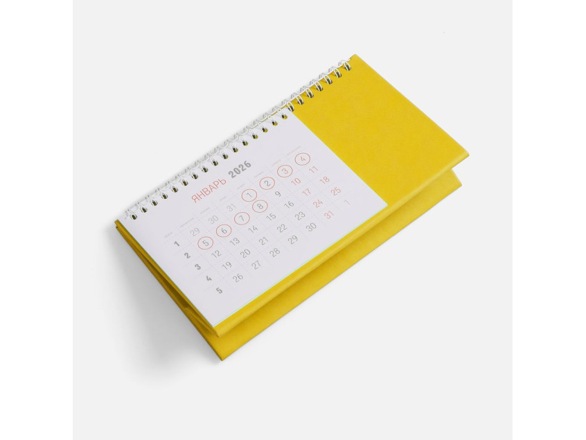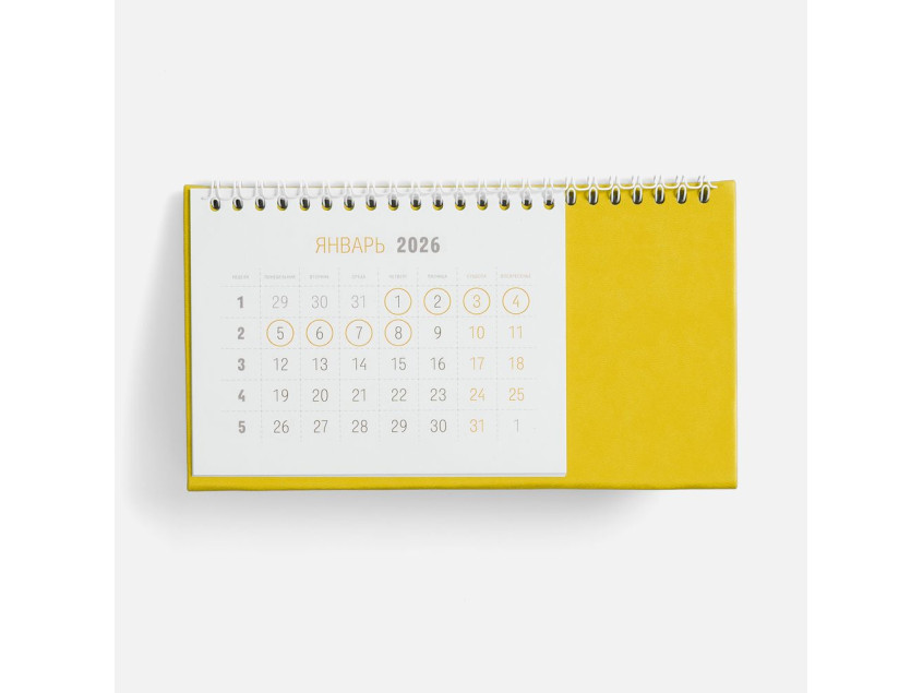 Настольный, перекидной календарь-домик выполнен из материала Latte, желтый KK.