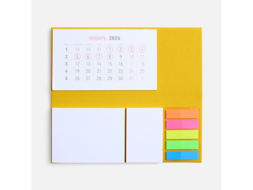 - 2 блока с клеевым слоем 7,5х7,5 см, 50 листов; пластиковые закладки 1,2х4,3 см, 5х25 листов.