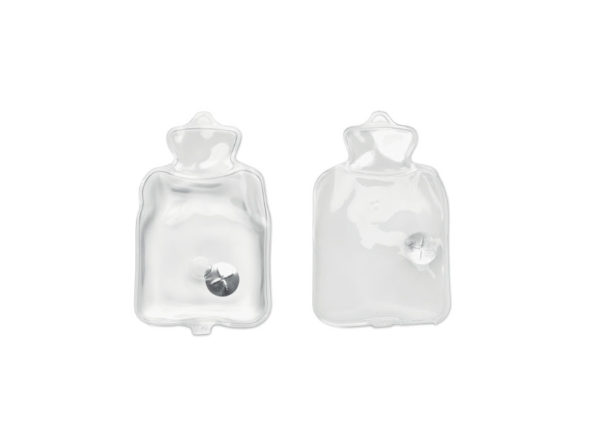Hand warmer in knitted polyester. Includes instant heat pad in PVC to be activated by pressing the metal plate inside. Reusable by placing pad in hot water.