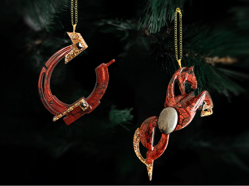 Игрушки бережно упакованы в стильную коробку из плотного премиального картона с индивидуальным ложементом, который надёжно фиксирует игрушку. Такой презент не требует дополнительной упаковки и готов порадовать своего обладателя. Для вашего удобства к каждой игрушке прилагается элегантная цепочка или ленточка, с помощью которой вы легко сможете подвесить их на ёлку.