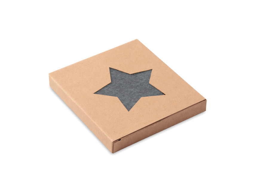 Набор из 4 фетровых (RPET) подставок костеров в форме звезды. Упакован в крафт-коробку