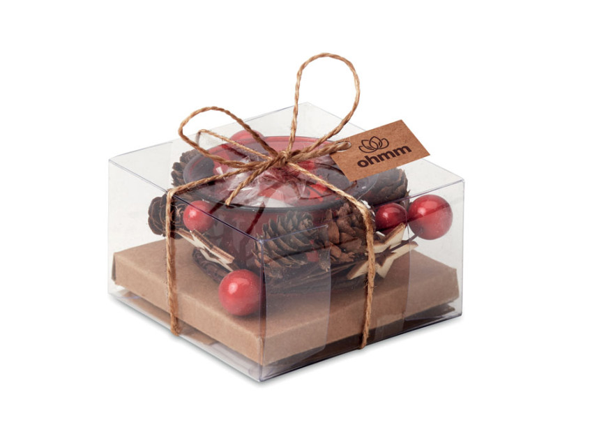 Стеклянный подсвечник с украшением. Представлен в картонной коробке и коробке из ПВХ с ленточкой и открыткой.