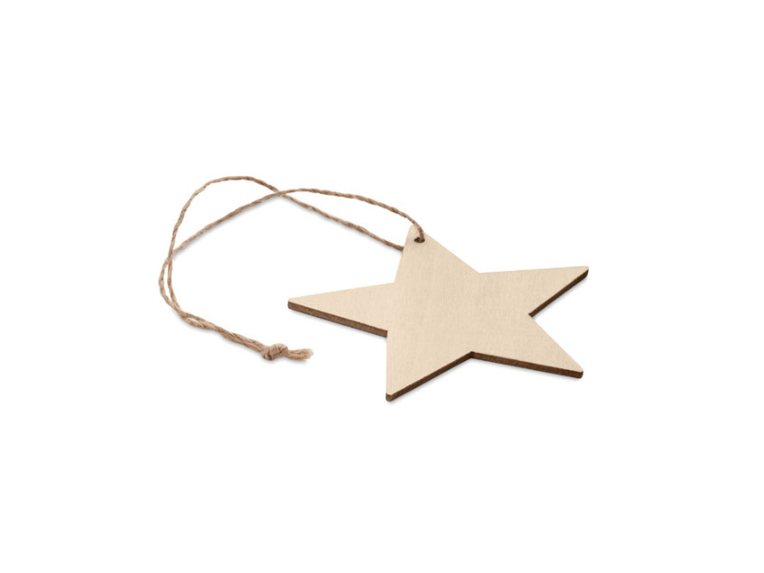 Деревянная подвеска из МДФ в форме звезды с джутовым шнуром. Так как МДФ является натуральным материалом, у отдельных изделий могут быть небольшие различия в цвете и размере