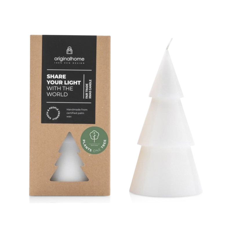 Большая свеча без запаха в виде елки от Originalhome на 100% натуральная и изготовлена вручную из сертифицированного пальмового воска. Это идеальный рождественский подарок для всех, с кем хочется поделиться светом и теплом. Свеча горит примерно 29-32 часа. Воск из пальмовых ядер.