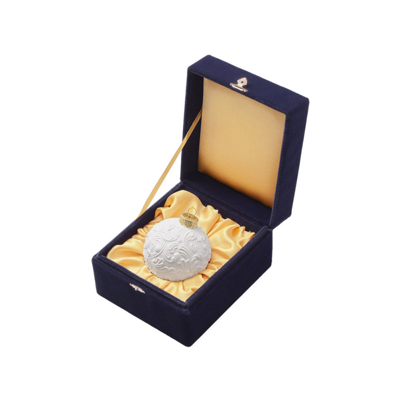 Игрушка упакована в изысканный подарочный футляр, обитый синим бархатом, что подчеркивает её ценность и делает готовым презентом для коллег и партнеров.