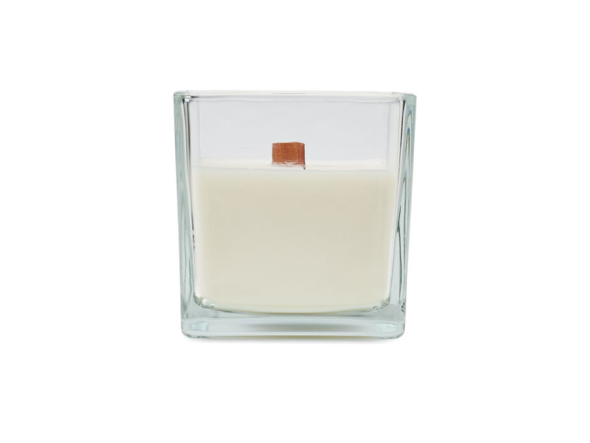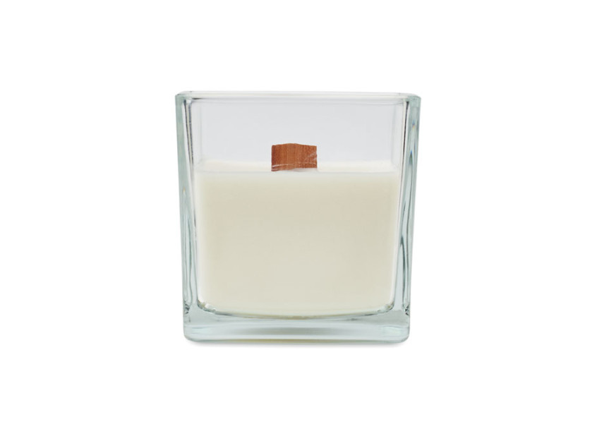 Large vanilla fragranced plant based wax candle 600gr in glass with wooden wick and beehive design on top. Burning time 65 hours