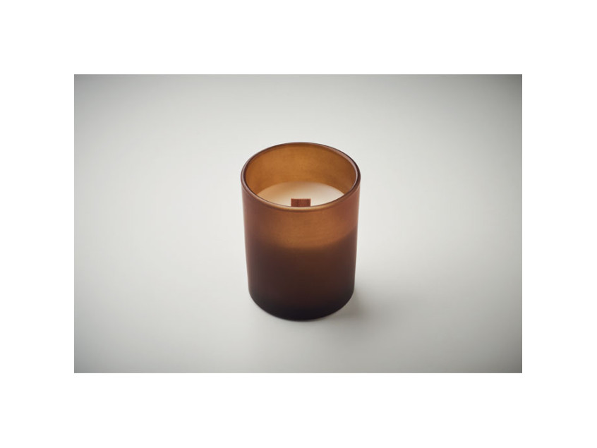 Vanilla fragranced plant based wax candle 80 gr in glass with wooden wick. Burning time 14 hours