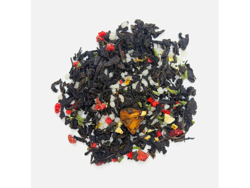 Состав: чай черный с ананасом и соком ананаса (чай черный байховый крупнолистовой, кусочки ананаса, сок ананаса), клубника сублимированная, мята сушеная, медовые гранулы, цедра лимона, ароматизатор натуральный Арбуз, ароматизатор натуральный Лимон.