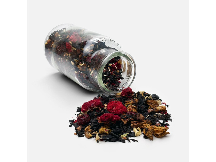 Чай «Сокочай», черный с соком ананаса с вишней, цветками и коркой граната и лемонграссом
