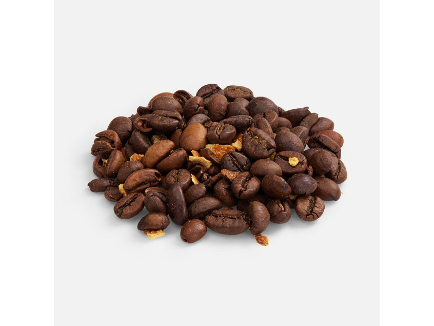 Натуральный зерновой кофе средней обжарки в сочетании с дольками сушеного апельсина — прекрасный подарок для кофеманов, ценящих богатство и насыщенность вкуса. Легкая сладость и свежий апельсиновый флер — для тех, кто любит бодрящий вкус с изюминкой.