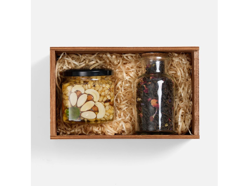 Этот набор станет прекрасным выбором как для бодрого утра, так и для спокойного вечера. Все компоненты представлены в деревянном ящике, что делает набор изысканным подарком для ценителей натуральных вкусов.
