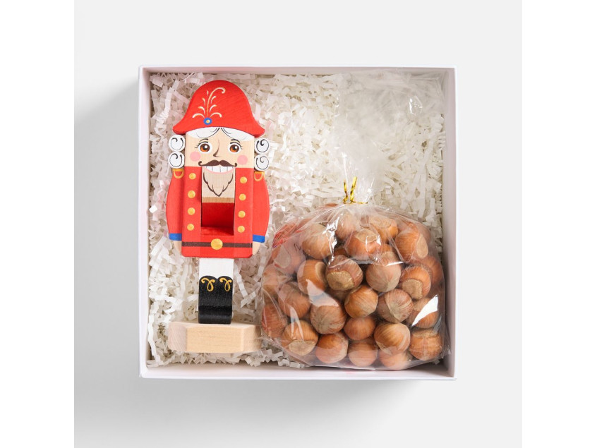 Могут ли чудеса случаться как по щелчку? Конечно! Праздничный набор позволит окунуться в сказочный мир детства. В аккуратной деревянной коробочке лежит настоящий орехокол — Щелкунчик, персонаж новогодней волшебной истории. С лесными орехами он справляется на раз.