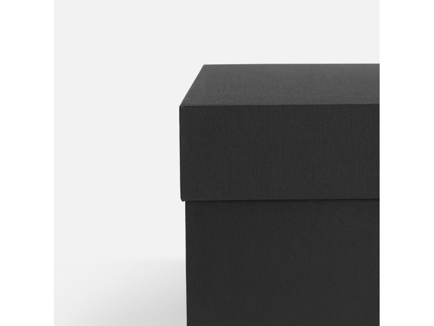 Коробка изготовлена из переплетного картона, кашированного дизайнерской бумагой.