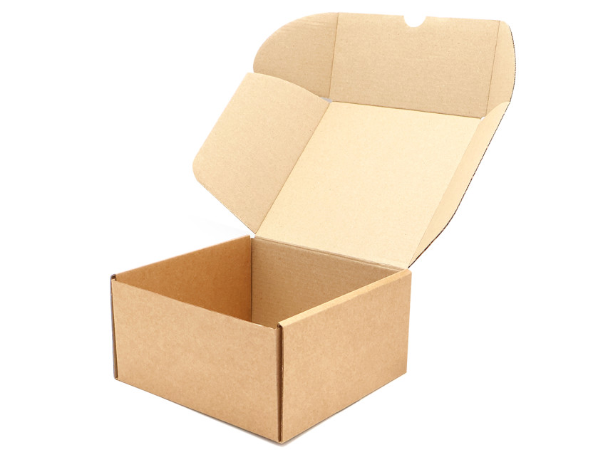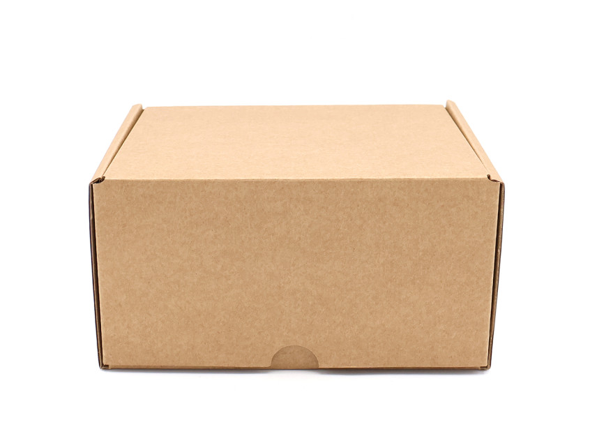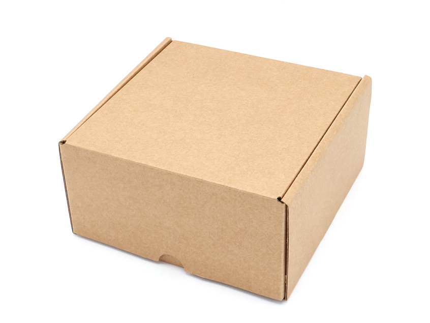 Самосборная коробка из бурого микрогофрокартона с внутренними размера 15,5х15,1х8 см.