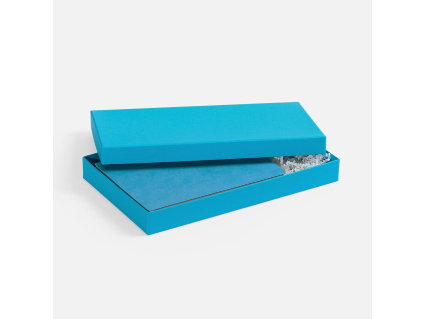 Изготовлена из переплетного картона, кашированного дизайнерской бумагой Malmero.