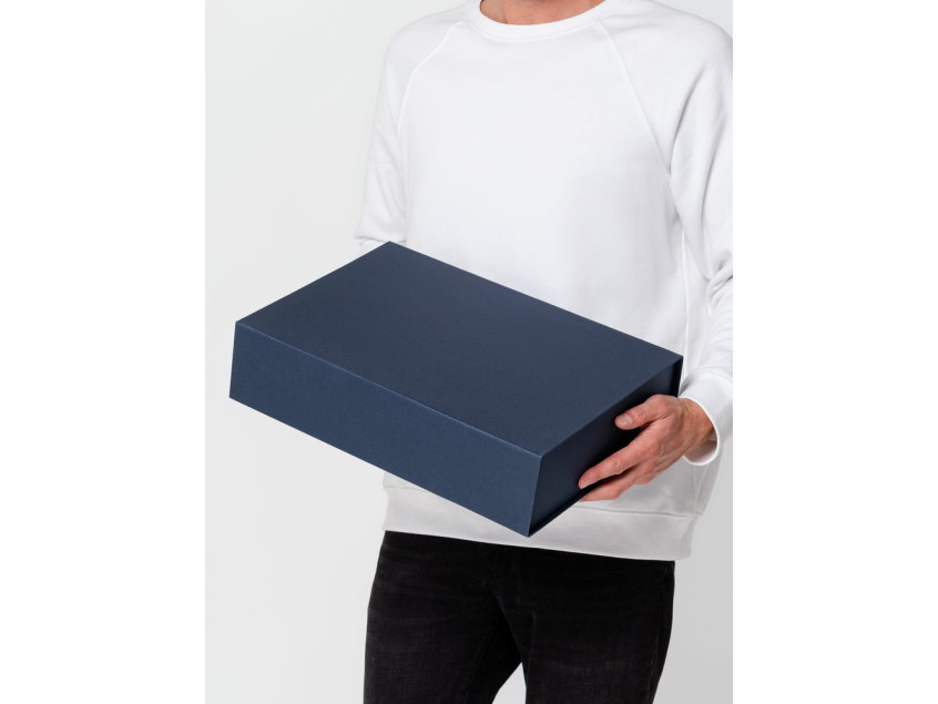 Коробка изготовлена из переплетного картона, кашированного дизайнерской бумагой Fabric Embosing Net.