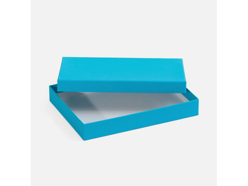 Коробка изготовлена из переплетного картона, кашированного гладкой дизайнерской бумагой Malmero.