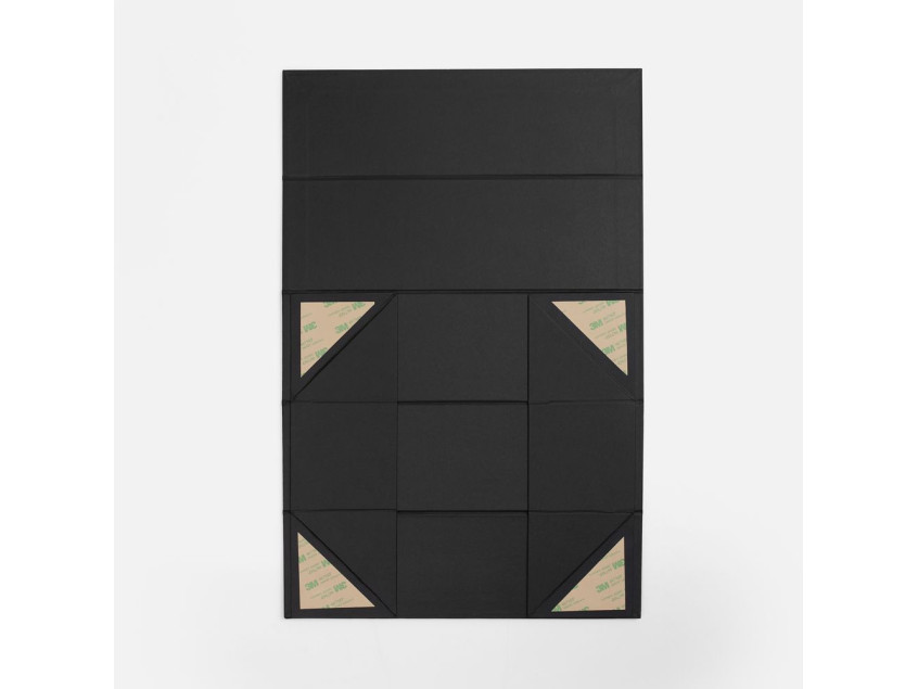 Коробка выполнена из переплетного картона, кашированного гладкой дизайнерской бумагой Malmero, с крышкой на магните.