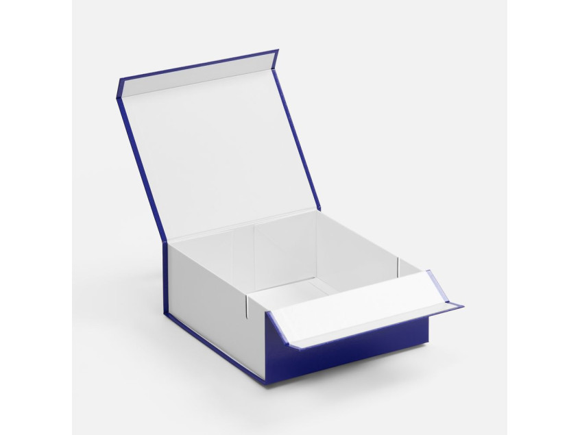 Плотная коробка из переплетного картона толщиной 2 мм с практичной конструкцией на двух створках. Складная система с уже нанесенным двусторонним скотчем позволяет быстро собрать коробку без дополнительных инструментов. Лайнер с полуглянцевым ламинированием устойчив к повреждениям и надолго сохраняет безупречный вид.