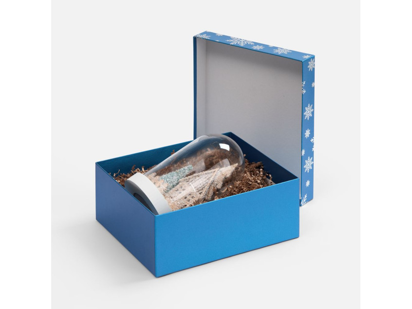 Коробка выполнена из переплетного картона толщиной 1,5 мм, кашированного бумагой TPG с тиснением серебристой фольгой.