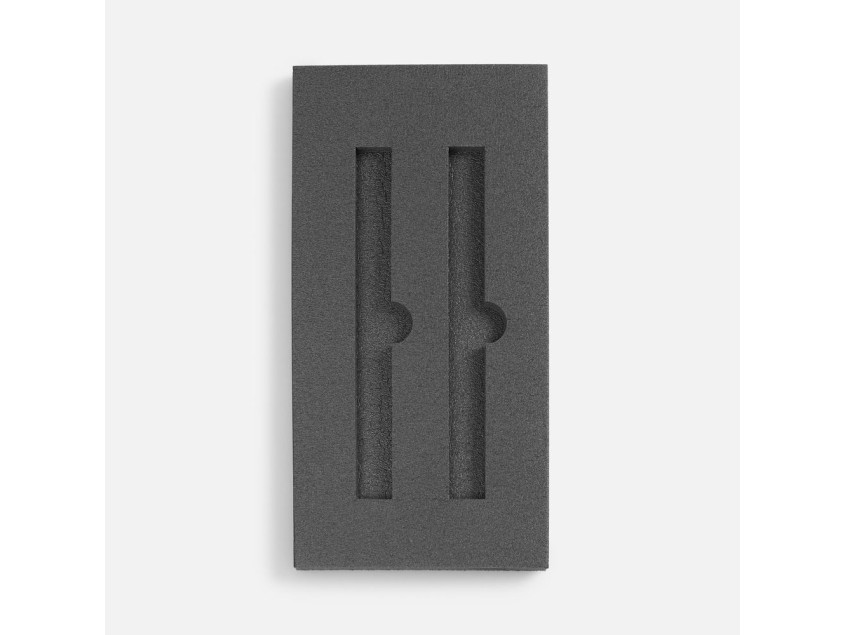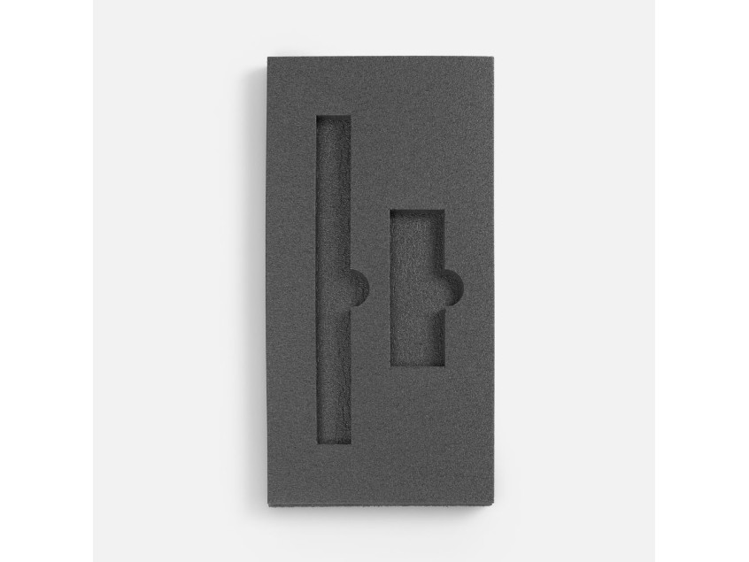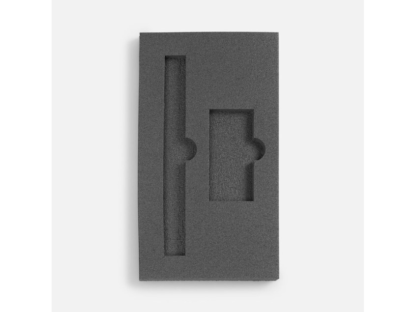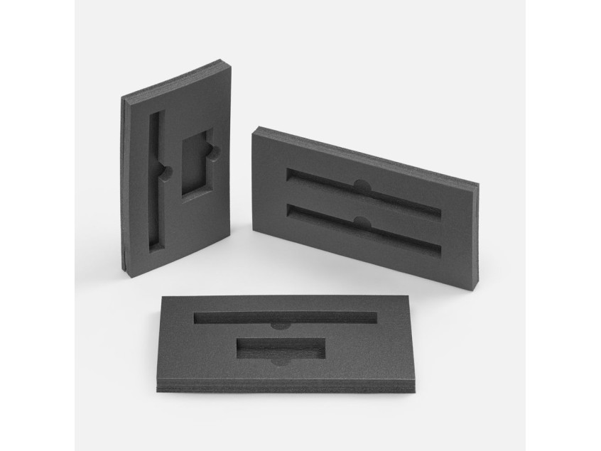 Ложемент, изготовленный из материала Izolon 500 черного цвета, представляет собой многослойную конструкцию, состоящую из нижнего слоя толщиной 5 мм и верхнего слоя толщиной 10 мм. В соответствии с утвержденным макетом, проемы для размещения предметов могут быть спроектированы как в одном, так и в обоих слоях.