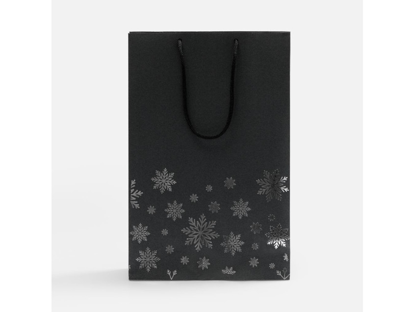 Пакет из бумаги Galaxy Metallic (TPG) плотностью 120 г/м² с тиснением серебристой фольгой.Выдерживает вес до 2 кг.