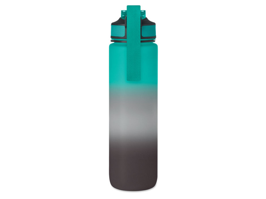 Спортивная бутылка для воды из переработанного пластика со встроенной соломинкой для питья, мягким силиконовым горлышком, разметкой, регулирующей потребление жидкости, удобной крышкой с замком безопасности и ремнем для переноски. Объем 1 л.