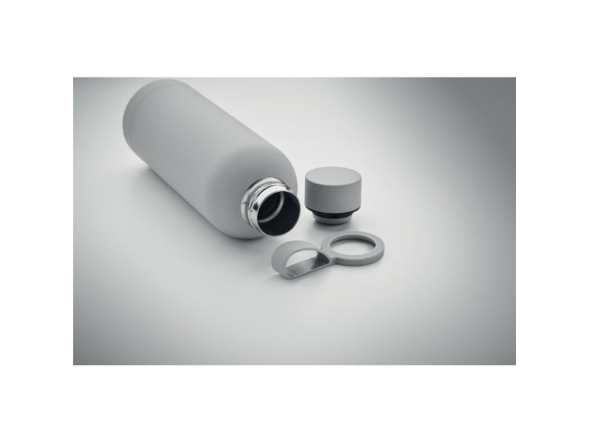 Представьте: вы отправляетесь на пробежку, в поход или просто на прогулку. Ваша бутылка — легкая, стильная, с удобным силиконовым ремешком, который не скользит в руке. Она не просто держит воду прохладной, но и подчеркивает ваш вкус. Серый матовый цвет, дополненный резиновым покрытием, выглядит минималистично и современно. Это не просто бутылка — это аксессуар, который говорит о вашем стиле и ответственном отношении к природе.