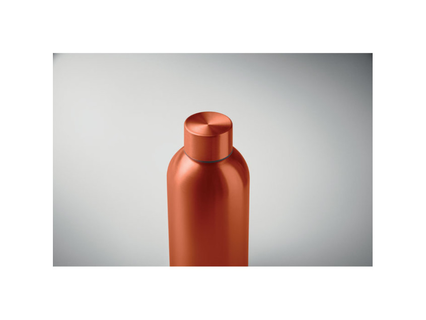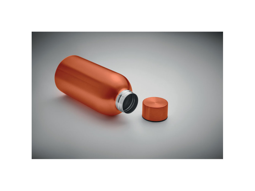 Одностенная бутылка из переработанной нержавеющей стали 90% и 10% нержавеющей стали. Герметична. Объем 500 мл.