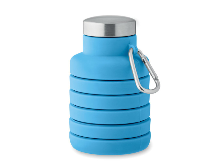 Эта бутылка – настоящая находка для тех, кто ищет сочетание функциональности и стиля. Силиконовый корпус делает ее легкой и гибкой, а крышка из нержавеющей стали добавляет долговечности и изысканности. В сложенном виде она занимает минимум места, что особенно удобно для путешествий или занятий спортом. Алюминиевый карабин позволяет легко закрепить ее на рюкзаке или сумке, делая бутылку всегда доступной.